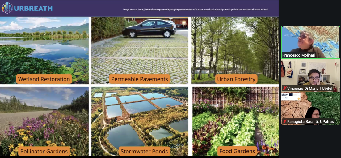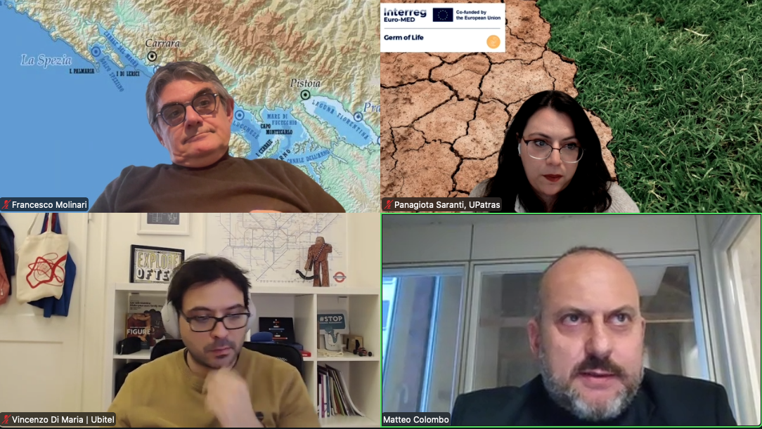 The session features contributions from Panagiota Saranti (University of Patras and Project Manager of Germ of Life), who opens the webinar; Vincenzo Di Maria (Ubitel, Spain), who presents the participatory co-creation approach; and Matteo Colombo (also from Ubitel), who explains how public procurement can become a lever to drive innovative and sustainable solutions. The keynote speaker, Dr Francesco Molinari (independent policy researcher and advisor), offers expert insight into the role of public procurement in promoting nature-based solutions.